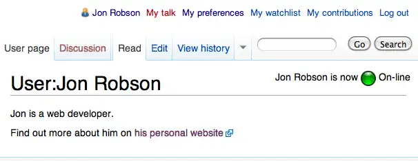 | Description | Adds little bar with icon indicating whether user is online or not on user page. |
