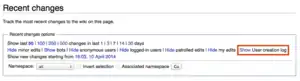 RecentChangesOption::create(/* $hideDefault */ false)->filterLogType("newusers");