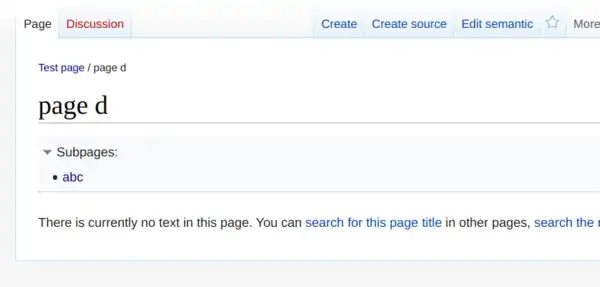 SubpageNavigation shows a collapsible list of subpages on the header of each article, including empty articles, with subpages. By contrast to other similar extensions, SubpageNavigation does not require to add a parser function in the wikitext, and shows only direct children of a page. (a direct child, however, might include slashes if the parent page does not exist). It also features a breadcrumb navigation placed above the title, and a special page where to browse all the pages of the wiki grouped by subpages, in a similar way to the Github file manager.