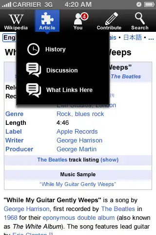 NOTE: This menu perpetuates a poor interaction within Wikipedia, which is the conflation that there are not also histories to discussions and so forth. Solving the greater Wikipedia "tab/sub-tab" interaction is currently outside of the scope of this feature.