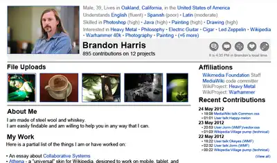 Users of modern web sites have come to expect the ability to provide degrees of identity and personalization to their experience. While MediaWiki allows a degree of personalization (through preferences and gadgets), it does not provide easy-to-use and understand mechanisms for displaying identity.