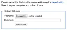 - Go to your wiki's Special:Import page and select the file you created from the export in step 2.