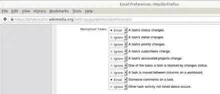Another possibility may be that you are a "Member" of a project that was subscribed as a group to a task. This feature is not commonly in use at Wikimedia, but if it applies to you, you can choose to opt-out of group mail by choosing "Disable Mail" on the project's "Members" page. See the List of projects you have joined.
