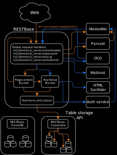 RESTBase is a caching / storing API proxy backing the Wikimedia REST API.