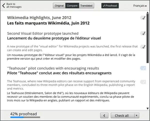 - Make users gain confidence. Encourage users to provide translations despite not being completely sure that are perfect.