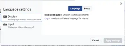 -  Language settings panel. Main entry point to configure language tools. It can be accessed from the interlanguage list on the sidebar, or at the personal toolbar for wikis lacking interlanguage links.
