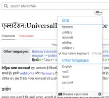 - Input method configuration. Users lacking a keyboard for a particular script can still write in that script by using input mappings. Hindi users with a QWERTY keyboard can write “प” by typing “pa” when Hindi input method is enabled.