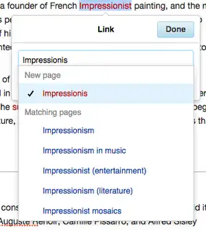- Highlight a word and make it a link (to an article different from the link title)