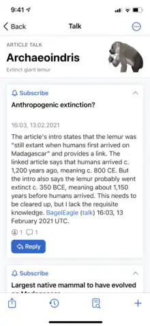 - Subscribing/unsubscribing to a topic and navigating through an article's talk page.
