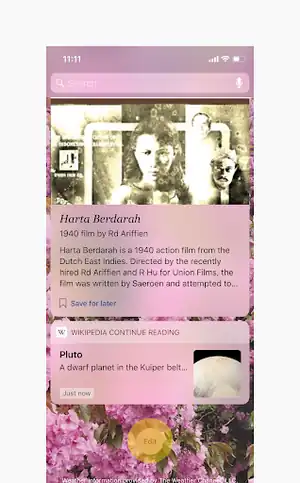 We provide Today screen widgets for the daily Featured Article, Top 5 most read articles in your primary language, Random articles, and Continue Reading your last article. You can enable (or disable) these from the Today screen Edit menu.