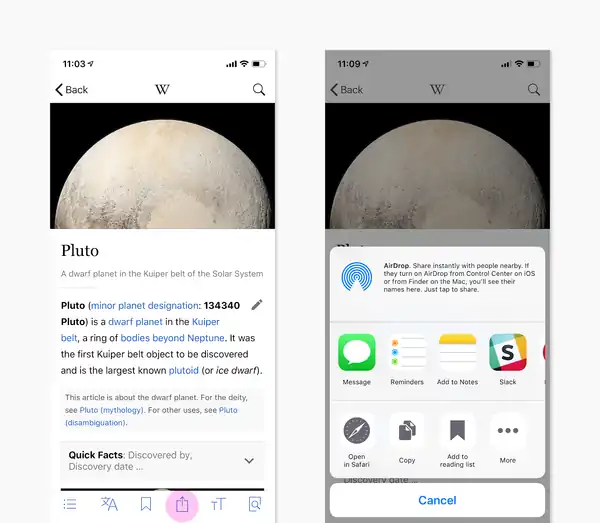 1. Go to a Wikipedia page in Safari, not the app.