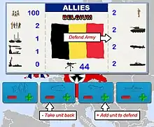 Invade power = Number of selected infantry + tank x 3 + aircraft x 5 + battleship x 7