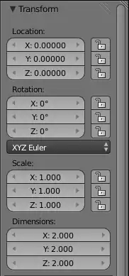 This can be useful for a child object: if its object transforms are locked, it will still follow changes to transformations on its parent, but it cannot have its transformation changed directly. This can prevent accidents when manipulating an “object” which is actually made up of multiple Blender objects: parent them all to a common root object (e.g. an Empty), and then lock them all, apart from the root object, and so they will transform together by manipulating just the root object, and cannot (accidentally) be separated.