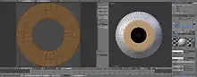 - Switch to a front view and zoom in. Hit “C” to enable circle select and select the central faces plus one ring out. You can control the size of the selector by rotating your mouse wheel.