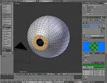 - Finally, click Akey to deselect all and use circle select again to select the remaining faces on the iris. Assign them to a new material.
