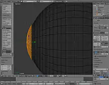 Noob Note: It is also possible to flatten the rings in a way that leaves the last ring in place and moving the rings later is not necessary. Before you flatten those 4 rings and the tip of the sphere place your 3D cursor in the plane where the last ring involved in scaling operation lies (use border select to select only the fourth ring, press Shift + S , and select "Cursor to Selected"). Then set the pivot point to "3D Cursor". Finally proceed like instructed above by selecting all rings to be flattened and scaling them to 0 in Y direction. This time the outermost ring will stay in place. Do not forget to set the pivot point back to the default option "Median Point". You may return the 3D cursor to the center by pressing Shift + C .