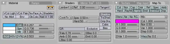 |  | Why is this so complex? Well, with complexity comes flexibility. You can use an image (or procedural texture) for a few mappings at once, e.g. Color, Diffuse, Alpha, Spec and the like. |