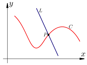 A secant is a line drawn through two points on a curve. We can construct a definition of a tangent as the limit of a secant of the curve taken as the separation between the points tends to zero. Consider the diagram below.