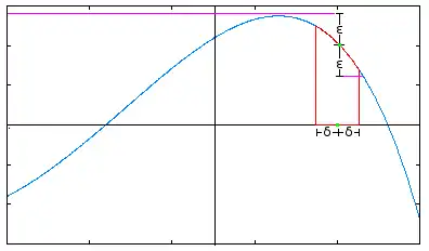 (We want the thing in the middle of the inequality to be because that's where we're taking the limit.) We normally choose the smaller of and for , so , but any smaller number will also work.