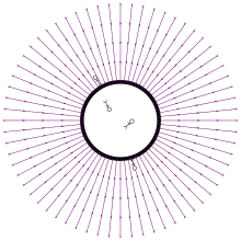 Choose infinity as the origin point and let . Given an arbitrary point , choose a direction quantified by unit length vector . The path travels backwards along a ray that starts at and points in the direction given by . . Since this integral does not depend on the direction , the average over all directions is: