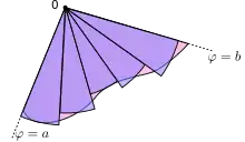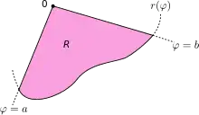Let denote the region enclosed by a curve and the rays and , where . Then, the area of is