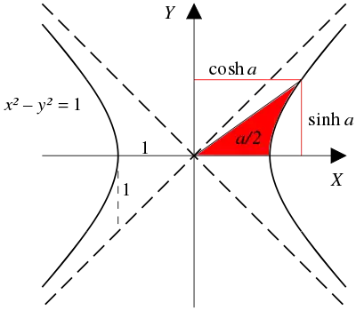 Rotating a ray from the direction of the positive half of the x-axis by an angle (counterclockwise for and clockwise for ) yields intersection points of this ray with the unit hyperbola: . It is defined that: