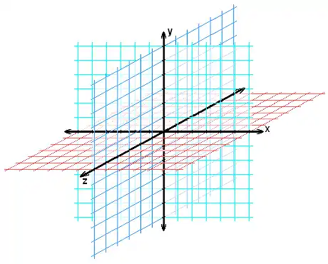 Similar to the two coordinate axes in two-dimensional coordinates, there are three coordinate planes in space. These are the -plane, the -plane, and the -plane. Each plane is the "sheet of paper" that contains both axes the name mentions. For instance, the -plane contains both the and axes and is perpendicular to the -axis.