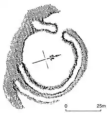Buckton Castle is a medieval enclosure castle near Carrbrook, Stalybridge. The castle is oval, with a 3m wide stone curtain wall surrounded by a 10m wide, 6m deep ditch. It is uncertain who built the castle, but it may have been constructed for the early of Chester in the 12th century; it was lying derelict by 1360 when it was first mentioned in historical sources. The small number of finds retrieved during archaeological investigation of the site indicates that Buckton Castle may not have been completed.