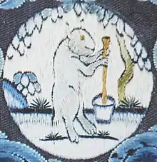 White Rabbit in the Moon making the elixir of immortality. From an 18th-century imperial robe embroidery