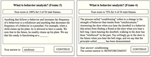 A visit to a school classroom in 1953 was the impetus for creating and testing teaching machines[8]. Skinner was troubled that the teacher was violating what he believed to be two research-grounded principles of education.