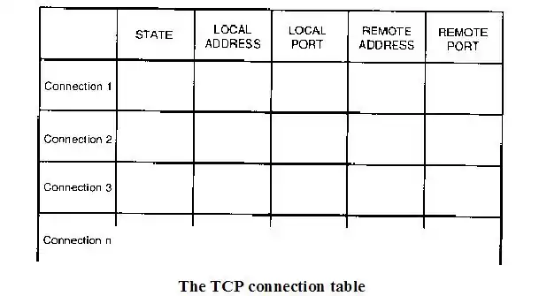 Because TCP is a connection-oriented protocol responsible for ensuring the transfer of a datagram from the source to destination machine (end-to-end communications), TCP must receive communications messages from the destination machine to acknowledge receipt of the datagram. The term virtual circuit is usually used to refer to the handshaking that goes on between the two end machines, most of which are simple acknowledgment messages (either confirmation of receipt or a failure code) and datagram sequence numbers. It is analogous to a telephone conversation; someone initiates it by ringing a number which is answered, a two-way conversation takes place, and finally someone ends the conversation. A socket pair identifies both ends of a connection, i.e. the virtual circuit. It may be recalled that the socket consists of the IP address and the port number to identify the location. The Servers use well-known port numbers (< 1000) for standardized services (Listen). Numbers over 1024 are available for users to use freely. Port numbers for some of the standard services are given in the table below.