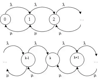 This is similar to the state transition diagram we have already seen. In equilibrium, the rate of flow of probability into a state must equal the rate of flow of probability out of that state. Hence