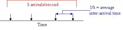 The time between when jobs join the waiting line and enter the queue and the amount of service each job requires are both given by random variables. The arrival rate is the average number of jobs that arrive per second. This is denoted by and hence is the average time between arrivals.