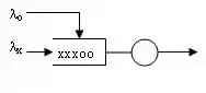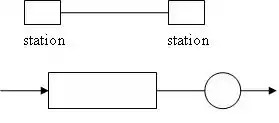 A queuing network is constructed by connecting the output of one queue to the input of another. This is illustrated below.