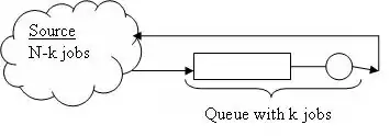If there are k jobs in the queue there are N-k jobs in the source. We will assume that jobs wait in the source an exponentially distributed amount of time with average before returning to the queue and that they are independent of each other. If there are (N-k) jobs in the source then they create a Poisson input process to the queue with rate