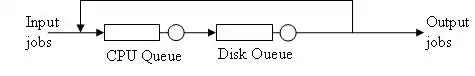 Networks of queues can be used to model systems of several interacting devices, each of which can be modeled as a queue. For example, a simple com¬puter system consisting of a CPU and disk can be represented by a 2-queue network.