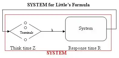 We now apply Little’s Formula to the SYSTEM (all red capitals) consisting of both the terminals and the System (capital S) shown below.
