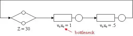 where is the total service time at the device for which is largest. This is the maximum possible system throughput.
