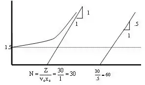 With one terminal connected to the system a job is never delayed waiting for other jobs to receive their service at a device. Thus, it spends an amount of time in the System and the throughput is . If, as the number of terminals is increased, each job that enters the system is not delayed waiting for other jobs to be served at a device, each job will spend only an amount of time in the system. The response time will be and the throughput will increase along the line .
