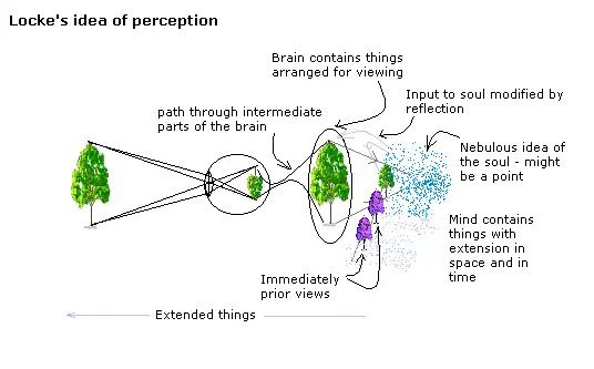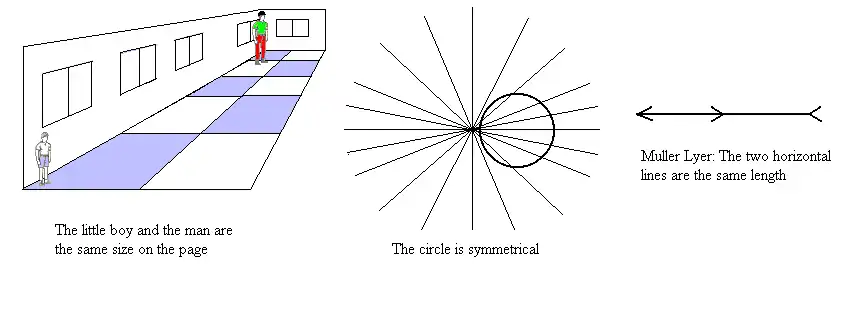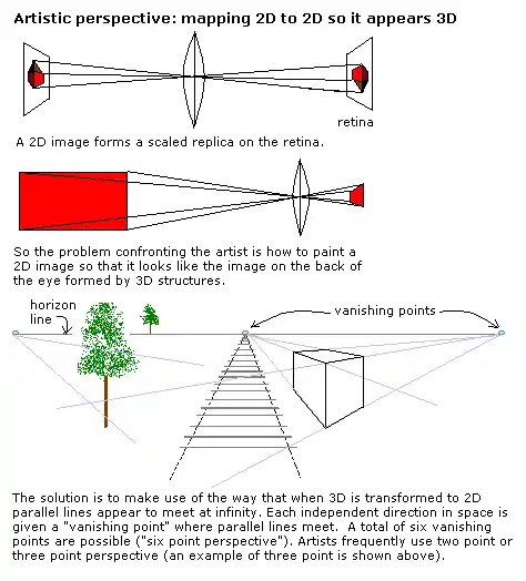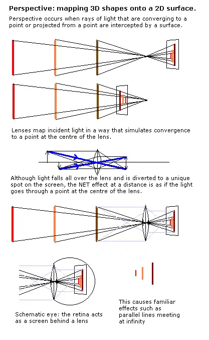 The naive realist idea of perception involves a point eye looking at a geometrical form. But the physics is different; there are two eyes with sometimes very different images in each. Light is refracted over the entire area of the cornea and directed over the entire area of the retina - there is no 'point eye'.