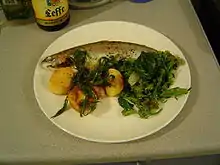 Trout is a bony fish with a mild flavor and a firm texture. It is fairly interchangeable with salmon. The most common ways to prepare trout are pan frying, broiling, smoking, and grilling, but trout can be prepared by a variety of methods.