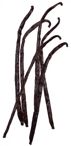 Vanilla is a flavoring derived from the vanilla bean. Vanillin is the distinctive chemical in vanilla. Vanilla is commonly used in desserts and in chocolate. Vanilla is often not noticeable as a distinct flavor, yet nevertheless greatly improves the taste of the dish it has been added to (much like salt and MSG).