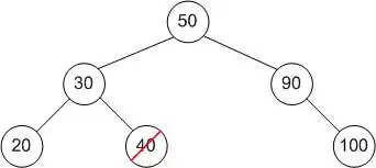 - The root node is 50, which is greater than 40, so you go to 50's left child.