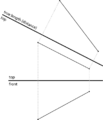 Finding a distance at an angle from the horizontal involves finding the distance between two points that do not share a plane perpendicular to the direction of view. To find this distance, one begins by connecting the two given points with a line segment. Then, one constructs the line first in point view so that one can then construct in in true length, which gives the true distance between the two points.