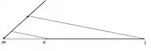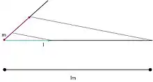 3) Draw a line equal to 1 on line m and connect the endpoint of that line to the line l, creating a triangle.