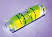 - Device that indicates the inclination. A level indicator usually comprises a sealed container (of glass or clear plastic) that is filled with liquid on which a gas bubble floats. Depending on the application, different shapes such as tubular, cross-shaped or circular level indicators are used.