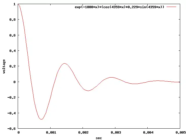 From these values note that . The system is therefore underdamped. The equation for the voltage across the capacitor is then: