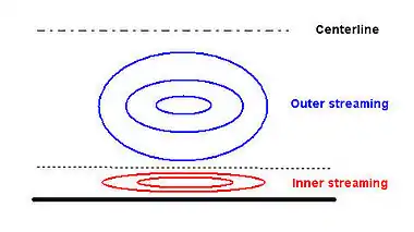 - Inner boundary-layer streaming: The study of inner boundary layer streaming was developed by Schlichting, who investigated an incompressible oscillating flow over a flat plate and calculated the two-dimensional streaming field inside the boundary layer. Figure 1 shows the inner and outer streaming in a channel. The length of such a cell is a quarter of the wave length. Figure 1: Schematic diagram of inner and outer streaming cells Figure 1: Schematic diagram of inner and outer streaming cells
