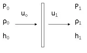 The basic conservation equations are applied to relate state 0 to state 1. Considering a one dimension steady flow across the combustion wave, the basic equations are: