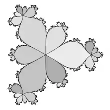 For exmple "the filled Julia set of f (z) = z(1 + z) 3 has three petals at z = −1." ( Curtis T McMullen )